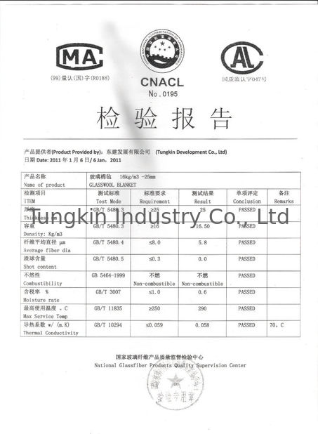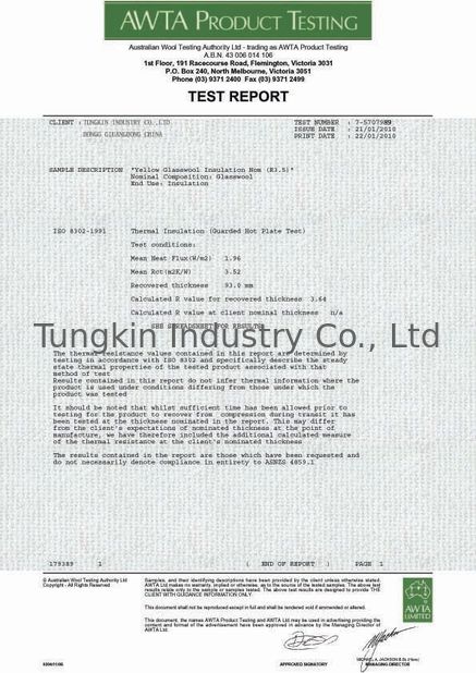표준:ASNZS.48591 TEST REPORT FOR GLASSWOOL R3.5